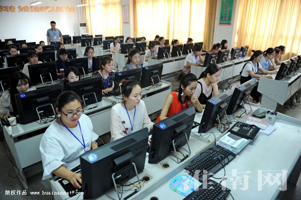 7月2日,全市首届中小学新任教师教育教学技能大赛分别在洞山中学、淮师附小洞山校区开赛,来自各县区的557名任教一年的年轻教师参加课件制作、教学设计、无生教学、硬笔书法、读书征文等环节竞赛,提升新教师队伍综合业务素质。近年来,我市通过实施城乡名师工程计划,优化教育资源,缩小城乡差距,推动中小学教师无校籍管理,促进义务教育优质均衡发展。图为2016年上岗新任教师在洞山中学微机室内参加课件制作大赛。