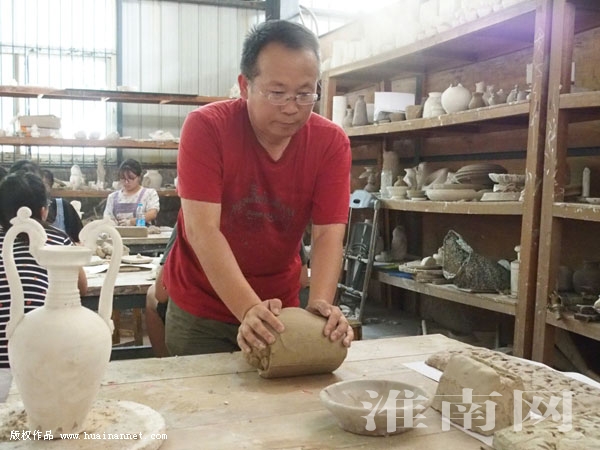 图二:许怀喜在进行古寿州窑陶艺创作