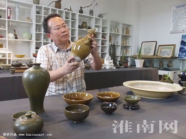 图一:许怀喜和他的古寿州窑陶艺作品