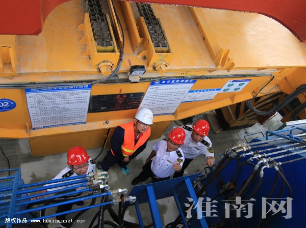 7月5日下午,在商合杭高铁淮南11标段架梁现场,市质量技术监督局、中铁上海工程局大型设备联合监管活动正在有序进行,检测人员对载重量高达900吨的运梁车进行安全“体检”。据了解,今年7月至10月,全国范围将开展安全生产大检查,坚决遏制重特大事故的发生。