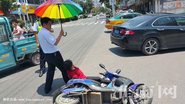 7月11日中午,烈日炎炎,热浪袭人。人保财险淮南市分公司凤台理赔分部的魏磊、赵蒙在完成事故查勘工作返程途中,行至凤台县农水路附近时,遇到一起轿车与电动车碰撞事故,两人迅速下车上前查看情况。