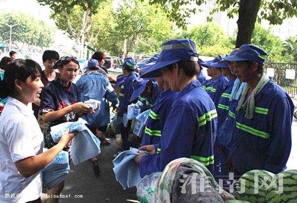 “今天真是太感动了,没想到社会上还有这么多爱心企业理解关心我们,就算累一些也要把城市打扫得更清洁。”7月27日,爱心企业淮南牛肉汤示范店、淮南许氏牛肉汤店为田区环卫处10多名环卫工人送上夏日清凉,环卫工人李多菊拿到慰问品后激动地说。爱心企业负责人表示,环卫工人顶着烈日清扫道路,为市民送去整洁,作为一家有责任的企业,应当回馈社会,让更多的人去关爱环卫工人,让夏天多一份清凉。