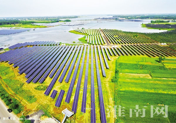 潘集区古沟回族乡利用采煤沉陷区建设光伏电站,并将生态种植、规模养殖融为一体,因地制宜地发展“太阳能+”的互补模式,提升绿色效益。