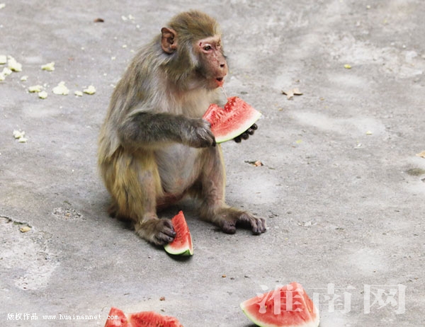 图一:猴子吃西瓜有模有样。