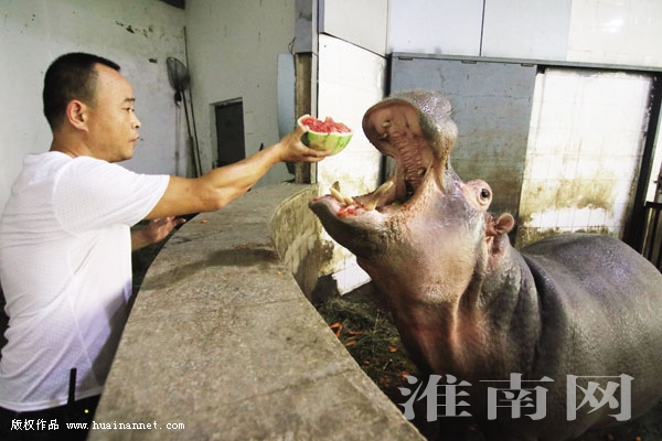 图四:河马大嘴一张就能吞下半个西瓜。
