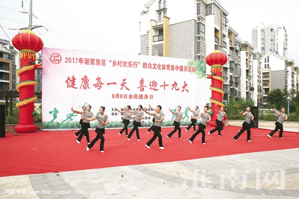 8月7日,谢家集区举办“乡村欢乐行”群众文化体育集中展示活动,纪念全国第9个全民健身日。9支来自街道、社区的群众表演队伍参加了广场舞、太极刀、中华功夫扇、健身柔力球等全民健身项目展演。