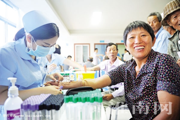 8月10日,田家庵区曹庵镇柳树村建档立卡的贫困户在镇政府组织下走进医院免费体检。在精准健康扶贫工作中,田家庵区投入42万元为2103名建档立卡的贫困户进行全面体检,跟踪治疗。该区通过推行“三保障一兜底一补充”、“两免两降四提高”、减免新农合缴费、大病保险、医疗救助、家庭医生签约等一系列健康扶贫政策,积极破解贫困户因病致贫、因病返贫难题。