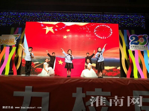 近日,庆祝香港回归20周年“星光耀香港”2017全国校园综艺大赛举行。此次,安徽省仅有两个节目入选,淮南星乐艺文化艺术培训学校选送的爱国诗歌朗诵《青春中国》夺得金奖,为安徽和淮南赢得了荣誉。开幕式上,来自淮南的7位小选手还被选中领颂《新三字经》,展现了淮南少年风采。