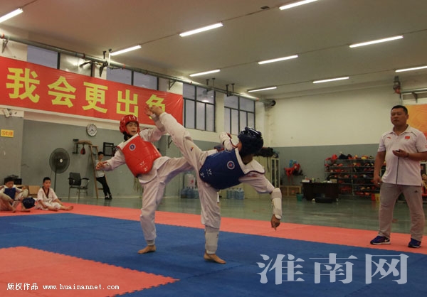 图一:跆拳道选手们在高温下比拼对抗。 图二:游泳馆内,运动员们加大运动强度。 图三:轮滑小队员们在进行竞速起跑训练。