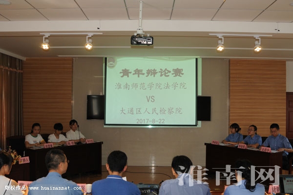 8月22日上午,一场精彩的青年辩论赛在大通区检察院举行。正方——淮南师范学院法学院2015级的3名实习学生与反方——大通区检察院的3名90后检察官,围绕某一案例中的当事人行为是否属于正当防卫展开激烈辩论。