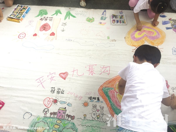 近日,凤台县百余名贫困儿童、留守儿童齐聚凤凰文化广场,用画笔为九寨沟灾区祈福。