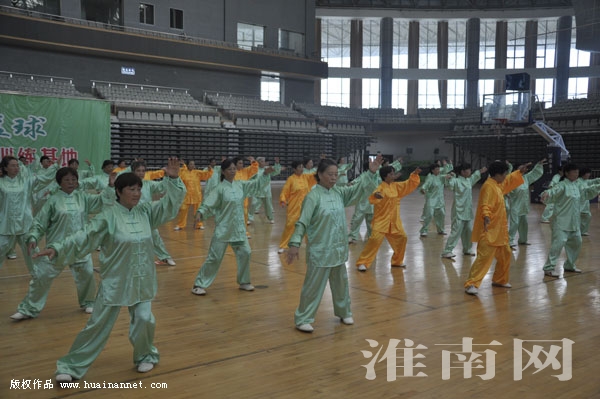 健身气功是我国传统体育健身运动,已成为国务院颁发的《“健康中国2030”规划纲要》重点扶持推广项目。市八运会,我市首次将健身气功纳入正式比赛项目。在市健身气功协会的组织下,各县区健身气功爱好者和安徽理工大学师生百余人参加了比赛。图为选手正跟随音乐集中展示竞技。