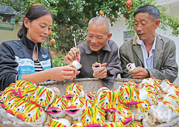 潘集区古沟回族乡蔡庙村着力发展特色经济,培养大户能人,扩大产业规模,村民们在做好传统农业基础上,利用农闲时间加工制作粉皮和民间泥塑手工艺品,收入逐年稳步提高,也为美丽乡村建设提供了稳定的经济支撑。图一、古沟回族乡蔡庙村村貌。图二、手工艺人制作的泥老虎系列制品。图三、村民们幸福指数稳步提高。