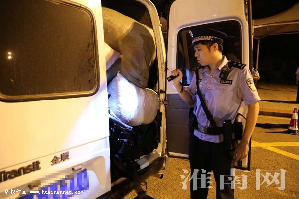 “你好,请熄火并出示你的驾驶证、行驶证”,“请你下车接受检查”……近日晚7时11分,淮南山南新区高速出口华灯初上、警灯闪烁,一辆刚下高速的“依维柯”被交警拦截后,多警种联合组成的盘查小组立即成战术队形对车辆和人员实施检查,当驾驶员下车后,民警发现车上堆满可疑货物,依法将车辆暂扣,货物来源及质量问题交由刑警进一步核查。这是当晚山南新区公安分局联合交警、武警武装设卡盘查行动的一幕场景。