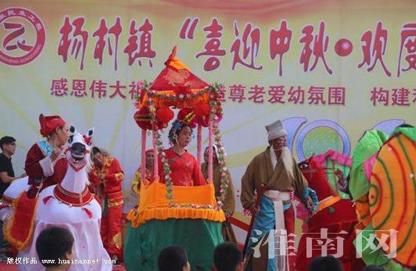 日前,凤台县杨村镇举办“喜迎中秋、欢度国庆”文艺联欢会。联欢会大都是农民自编自演的节目,以传统快板、鼓乐、舞蹈、说唱等表演为主,突出花鼓灯、推剧、锣鼓等,内容丰富、形式多样,贴近百姓、贴近生活,格调向上,乡土气息浓厚,深受百姓喜爱。