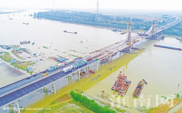 10月12日凌晨,淮上淮河大桥主桥顺利合龙。该桥位于我市洛河洼和汤渔湖行洪区内,为公路A塔斜拉桥,全长26.68公里,其中淮河特大桥10.2公里、双向六车道,两端接线长17.17公里、双向四车道,设计行车速度80公里/小时,预计今年年底基本建成。
