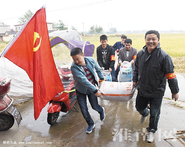 10月14日,凤台县古店乡新河村党员服务队帮助留守老人抢收水稻。近日,江淮地区持续阴雨天气,凤台县充分发挥213支村级党员服务队作用,利用雨停间隙,组织党员帮助困难户、留守老人清沟沥水、抢收抢种。