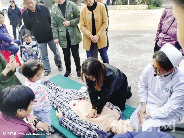 活动现场,医护人员重点讲解了“心肺复苏黄金六分钟”的处理方法和注意事项,包括胸外按压、开放气道、人工呼吸等知识,并且讲解了急性心肌梗塞、心绞痛、突发性脑溢血、哮喘、异物卡喉等生活中常见病的处理方法和注意事项。医争取时间,遇到紧急情况时,大家一定不要慌张,冷静处理。