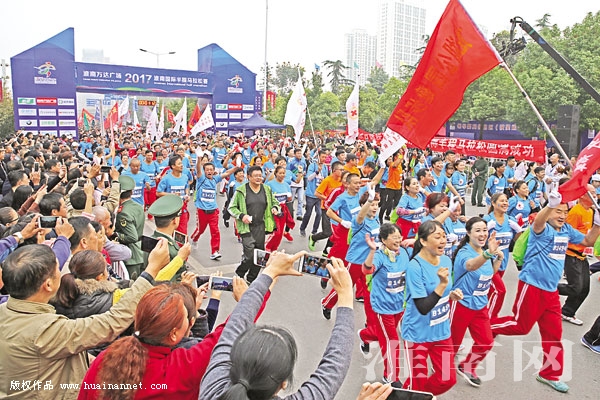 10月29日,2017淮南国际半程马拉松赛在市体育文化中心开跑,来自各地的7000余名马拉松爱好者齐聚美丽淮南,共赴体育盛会。
