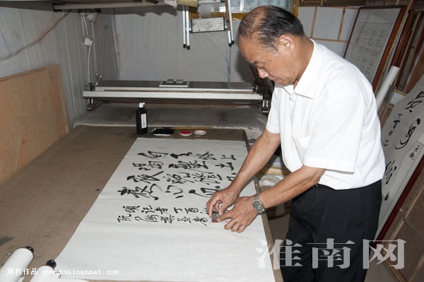 凤台县广播电视台退休干部阮仁鹏从事新闻工作42年,在国家、省市媒体发表新闻作品2000多篇,退休后,被县房管局聘请从事文字和新闻宣传工作。他乐为“新闻”献余热,被聘用的10年间,采写的反映全县住房保障和房地产管理的新闻稿件多篇被省市县新闻媒体采用。在第十八个记者节来临之际,他挥毫泼墨,创作了“白天路上喝尘土,夜晚灯下熬心血”书法作品,以颂扬新闻记者含辛茹苦的敬业精神。
