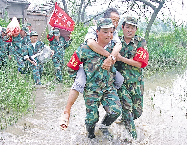 图一、危难时刻见真情(资料图)。图二、传统文化进军营。图三、凤台县“八一”林牧场18名退伍军人敢叫荒滩变绿洲。