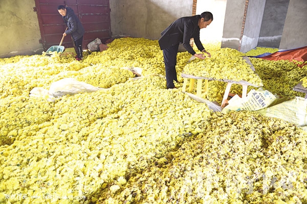 11月22日,凤台县大兴镇界东村村民晾晒丰收的中药材菊花,当地通过调整种植结构改善沿淮低洼地生态环境,美化乡村,增加群众收入。凤台县在美丽乡村建设中提升产业发展,坚持“一村一品”、“一村多策”原则,累计发展规模养殖企业32家,农民合作社164个,民营企业86家,流转土地7.4万余亩,为美丽乡村建设奠定了坚实的基础。