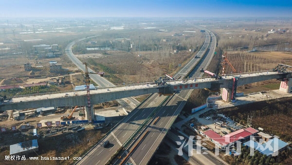12月8日,由中铁上海工程局三公司承建施工的商合杭铁路站前11标控制性工程——跨淮蚌高速公路特大桥128米连续梁顺利合龙。商合杭铁路站前11标位于淮南市、长丰县境内,正线长度39.434公里,连续梁斜跨淮蚌高速公路特大桥和G206国道,施工难度大,车流密度大、安全风险高,是架梁的关键通道上一道“卡脖子”工程,连续梁顺利合龙,确保了后续铺架的顺利推进。