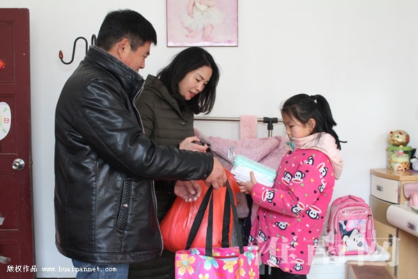 12月9日,安成镇沿淮村的熙熙家来了几位熟悉的客人,村里计生专干等工作人员带着棉衣和学习用品等礼物来看望她。