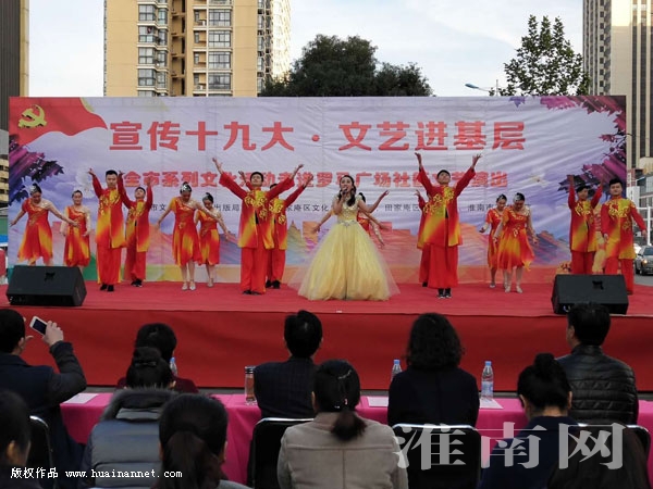 演出现场,市艺术剧院的专业演员带来10个精彩纷呈的节目,有当下流行的电视剧主题曲,也有唱响时代主旋律的歌舞。居民吴翠杰激动地告诉淮河早报、淮南网记者,能够在家门口看到高水准的文艺演出,自己感到十分高兴。她希望能够多举办类似活动,丰富社区居民的文化生活,也能够提高大家的艺术欣赏品位。