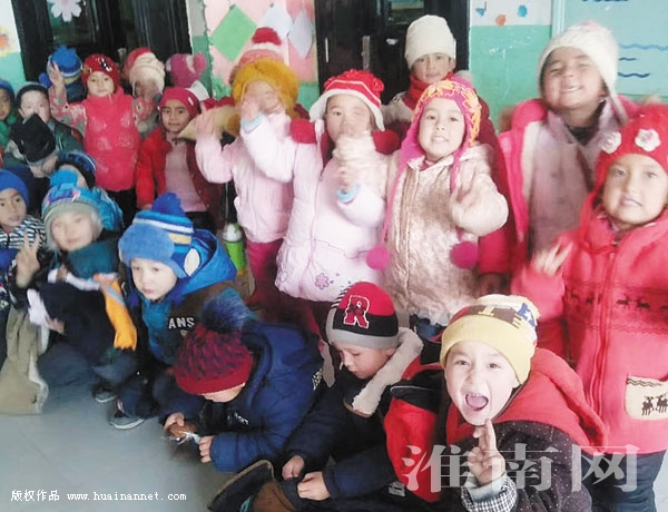 图一:策勒县小朋友穿上了淮南小朋友捐赠的衣服