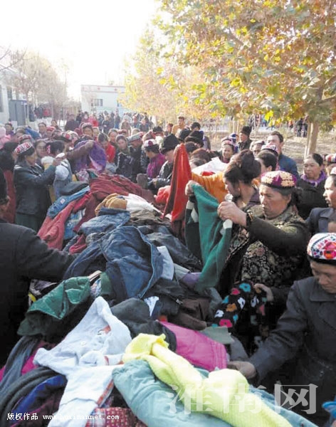 图三:伽师县的村民们挑选“爱心棉衣” (伽师志愿者协会供图)