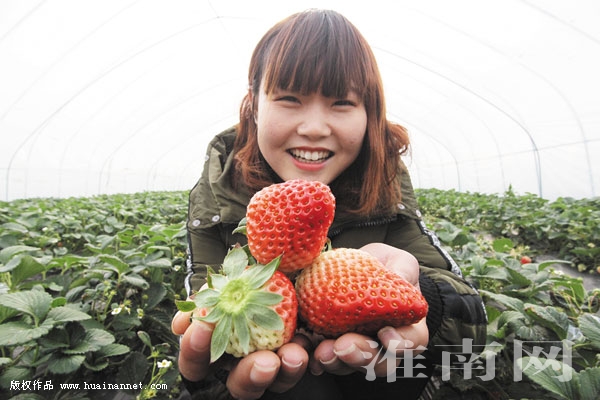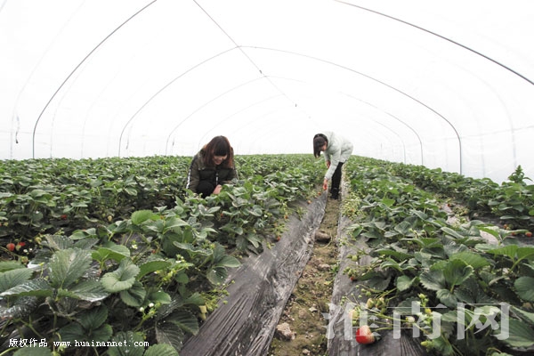 1月1日,大通区孔店乡河沿村村民闫其贵家5亩草莓喜获丰收,侄女在大棚里帮助采摘草莓,喜笑颜开。近年来,大通区大力发展现代农业,引导农民种植草莓、蔬菜、瓜果等经济作物,促进农民增收。眼下,孔店乡8000余亩冬季头茬草莓陆续上市,畅销淮南、合肥等市场,市场批发价每公斤约5元,采摘每公斤约7.5元,预计每亩草莓纯收益1.2万元以上,可为全乡农民带来约1亿元的收益。