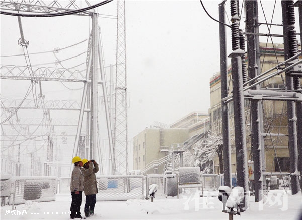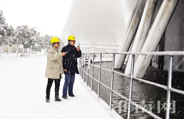 面对暴雪低温天气,大唐淮南洛河发电厂积极落实防寒防冻措施,广大干部职工坚守岗位、合力攻坚,力保恶劣天气下机组设备稳定运行,电力生产安全有序。图为该厂组织人员对循环水系统及电气设备进行仔细巡检,确保机组正常发电。