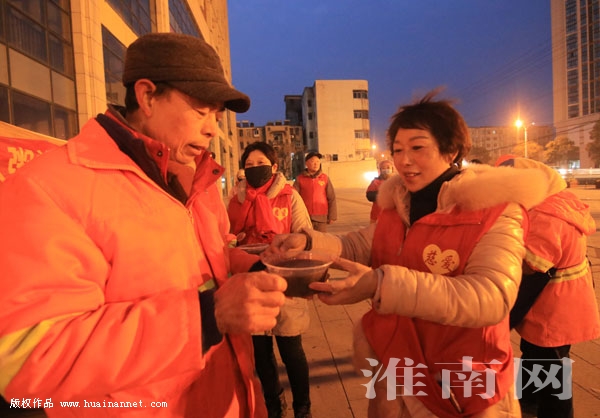 1月24日,是传统的腊八节。当天一大早,我市的慈善爱心人士,冒着刺骨的寒风来到泉山路口,向洞山中路、泉山路附近的近百名环卫工人,送上了热腾腾的“腊八粥”,让他们感受到寒冬中的温暖。