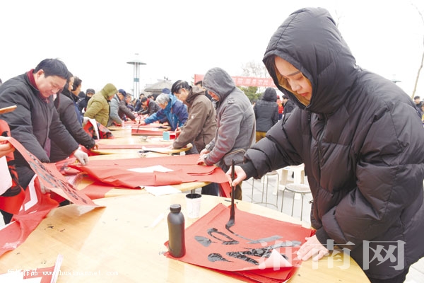 图一:书法家为群众书写春联。图二:医护人员为群众义诊。图三:农业科技部门免费发放蔬菜菜籽新品种。