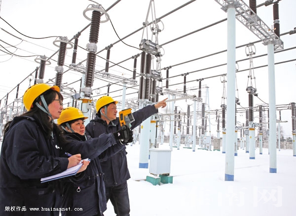 图一为淮南供电公司工人坚守岗位,密切监控降故障。