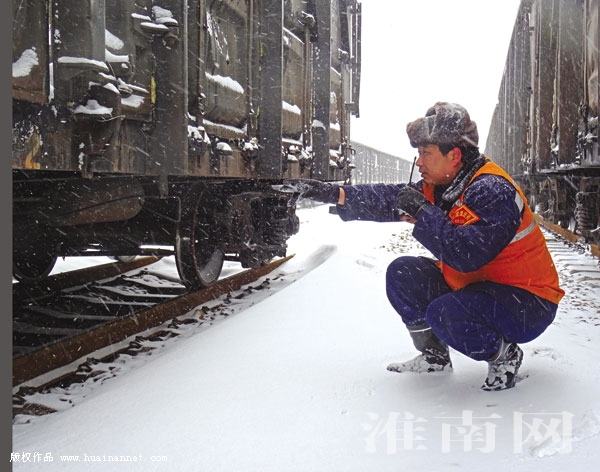 图五为铁路职工检修列车护航铁路物资安全出行。