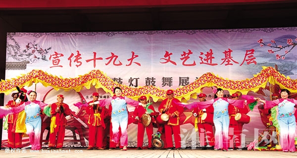 田家庵区充分发挥基层文艺工作者作用,用群众喜闻乐见的形式宣传党的十九大精神。图为该区文体局在安成镇综合文化站举办的“宣传十九大 文艺进基层”花鼓灯鼓舞展演活动。