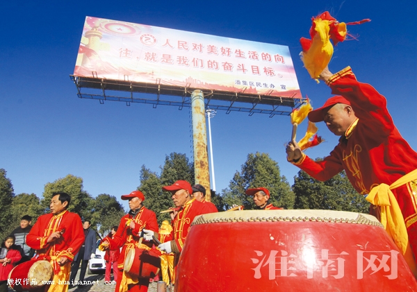 伴随着激情的威风锣鼓,金狮起舞,花鼓灯欢快喜悦,跑旱船诙谐幽默,龙船调生动喜庆……一个个富有乡土气息、极具地域特色的节目,把沿淮流域的民俗文化表现得淋漓尽致,也让十里八村的乡亲们过足了瘾。观众聂敬礼对这些节目非常地喜欢,不断地鼓掌,节目演完了他还不愿离开。他对记者说,“今天看到这些节目感觉到热闹喜庆,增加节日的热闹气氛,我今年都60岁了,又找到了小时候过年的感觉”。