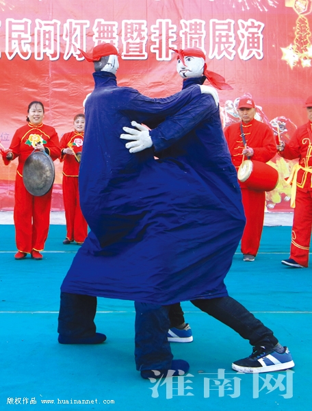 花鼓灯舞是淮河岸边老百姓庆祝农历新年的传统习俗,新年里,庄稼人身着盛装,敲起流传千年的丰收锣鼓,跳起传统花鼓灯,划旱船、斗犟驴,祈求新年里风调雨顺、人寿年丰。架河镇花鼓灯演员王玉红告诉记者,“能参加这次演出感到很兴奋,用我们的锣鼓敲出我们过上幸福生活的那种喜悦心情,敲出我们心中的那种激情,现在党的惠民政策越来越多,我们农民群众生活越来越好,每次参加演出,我们浑身都有使不完的劲”。