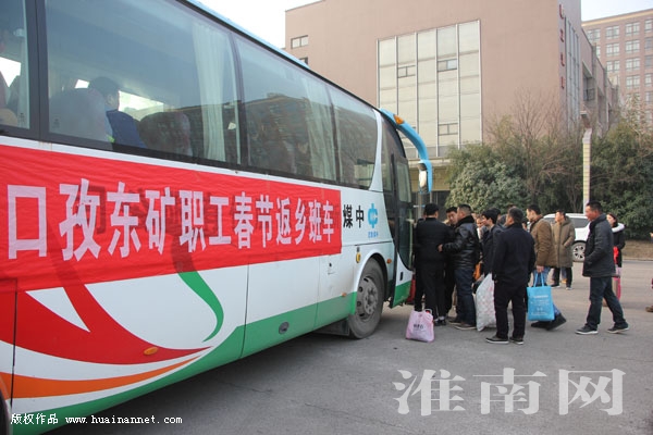 2月14日,中煤新集公司口孜东矿欢送放假矿工及家属欢喜回家过大年。为了矿工安全舒心返程,该矿党委及时向当地公交运输公司预定了5辆大型豪华客车,专门用来接送今年春节放假回家的矿工。想他们所想,解决了矿工春节往返的交通难题,矿工们深深地感受到了企业发展的喜悦。