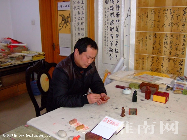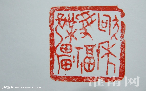 拿着他刻的作品,淮河早报、淮南网记者感觉到他的印章古朴老辣,充分体现了中国古典印章的形式和内涵,同时又加入了时代的元素,使人一见就生爱慕之心。