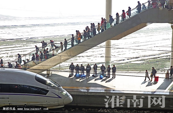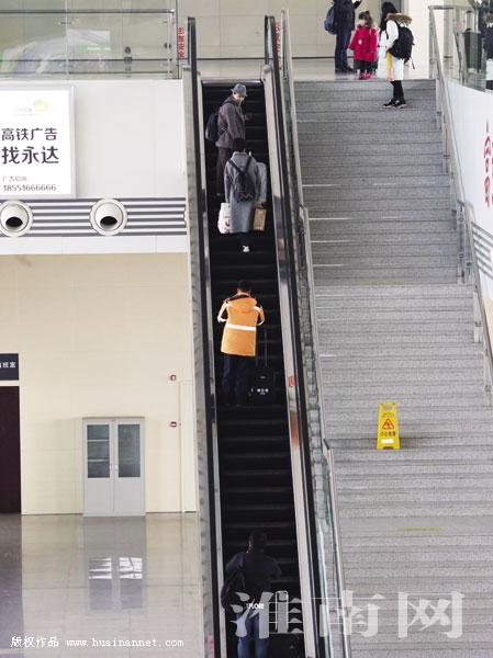 图九:电梯平稳运行,为回家的旅客提供便利。