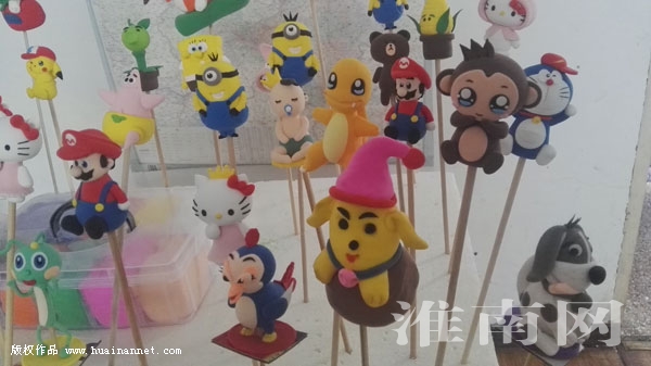 王之询说,时代在进步,传统文化也应该加上新的东西,“如果还是用老一套的方法来捏面人,那年轻人肯定不会喜欢。”他闲来无事时会经常看动画片和漫画书,将里面萌萌的动画形象记在心中,再用色彩斑斓的材料把它们创作出来,哆啦A梦、小黄人、kitty猫、海绵宝宝……一件件作品像变魔术般诞生。在新的一年到来之际,王师傅更是捏出了不同形状和表情的狗狗面人,预示新年面面俱“旺”。