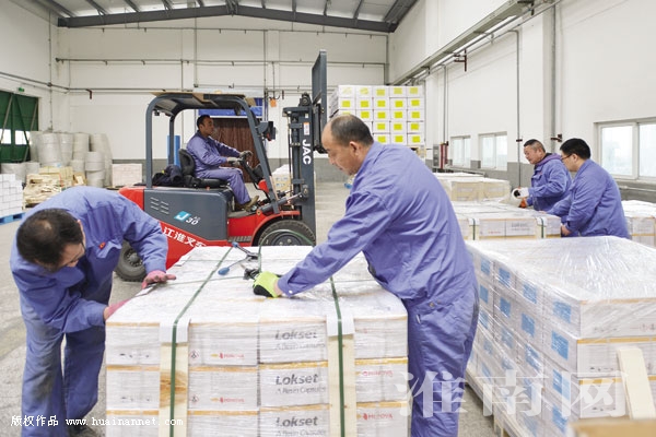 图一为淮南金科再生资源利用有限公司工人们正在生产再生建筑材料。图二为美亚高新材料股份有限公司工人们正在赶制、包装出口产品。