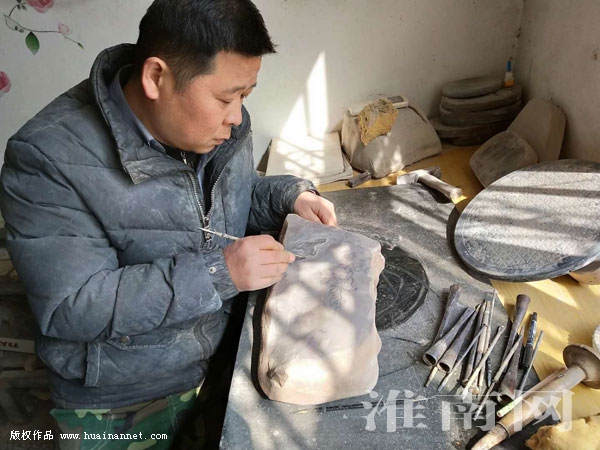 “学习雕刻紫金砚很苦,我自己掌握很多技术都是靠师傅传帮带教出来的。”和先军坦言,自己当初学习雕刻是为了找份工作,但随着时间的推移,自己也渐渐爱上了这份职业。一般来说,雕刻紫金砚从学徒到独立完成作品需要5年的时间,学徒先从规格砚台雕起,一边练雕功,一边学习绘画造型等技巧。可以说,作为传统技艺的雕刻,考验的是综合素质,更要有吃苦耐劳的精神和悟性才会有所大成。师傅言传身教最后还要靠自己按部就班地练习,所谓熟能生巧,练着练着就会在作品中融入自己的思想和设计,让作品达到一个新的高度。