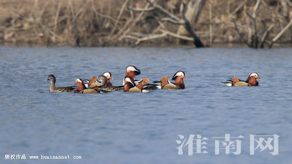 春风和煦,鸟儿竟翔。日前,在我市东部大通湿地的东侧水域,出现了近百只野生鸳鸯,它们或在水面上嬉戏飞翔,或在树丛间依偎栖息,生动美丽的场景令人欣喜。据我市环境保护志愿者、摄影家陈斌介绍,鸳鸯是对自然环境极其敏感的水禽,这次有这么大的种群光临淮南,在全省沿淮地区十分稀罕。这些鸳鸯在环境安全的情况下,会逗留到三月中旬左右,然后将飞往北方繁衍后代,希望森林公安、社居委及周边民众加以保护。