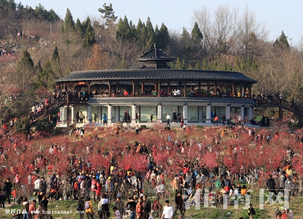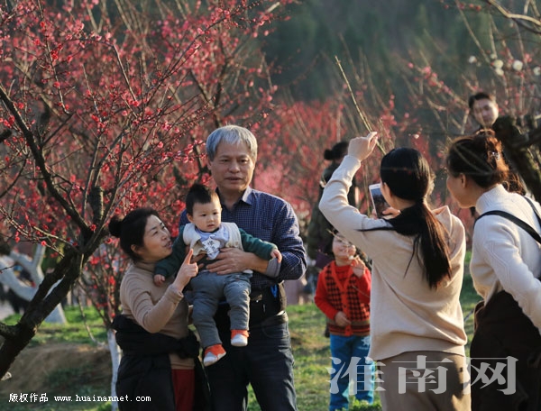 图为3月11日下午,淮南舜耕山梅园人潮涌动,犹如赶集一般的热闹。