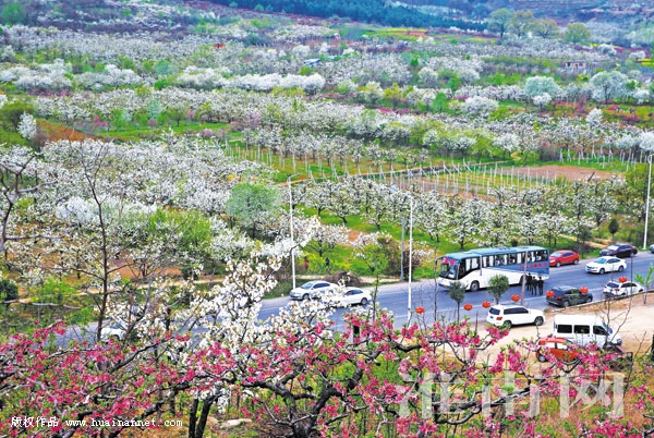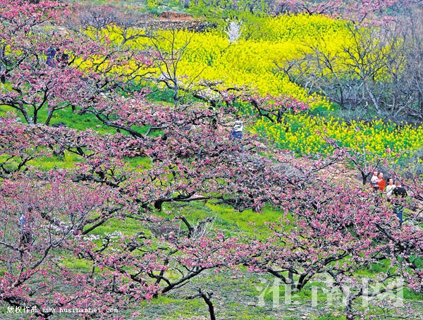 3月29日,春光明媚。八公山下万亩果园桃花梨花次第开放,朵朵桃花娇美艳丽、灿若云霞,漫山遍野的梨花恰似一树树玉蕊琼花,放眼望去,一片花的海洋,山坡俯瞰,更如霞披大地,美不胜收。人们纷纷来到果园欣赏桃花、梨花,拍照留影,享受春的气息。