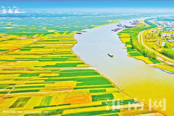 4月8日,淮河凤台段两岸春光明媚,金灿灿的油菜花和绿油油的麦田纵横交错,沃野千里。淮水汤汤、花香四溢,淮河两岸风光如同一幅钟灵毓秀的泼墨写意春光图,让人为之陶醉。